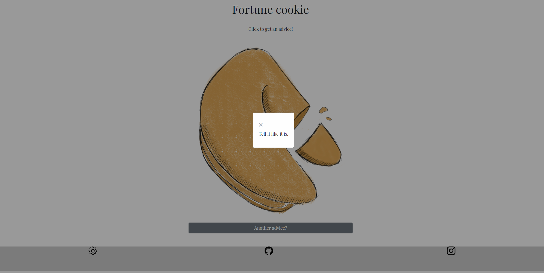 A fortune cookie project made using the advice slip API. All images included in the project were drawn by me.